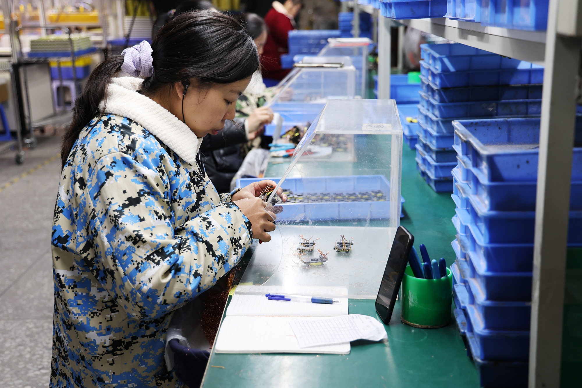 装置绝缘线、外观归纳查看、制品打包、不良品修理……在湖南协兴电子有限公司,近四十名返岗工人各司其职,赶紧赶制变压器、整流器和电感器订单,车间内一派繁忙的出产现象。